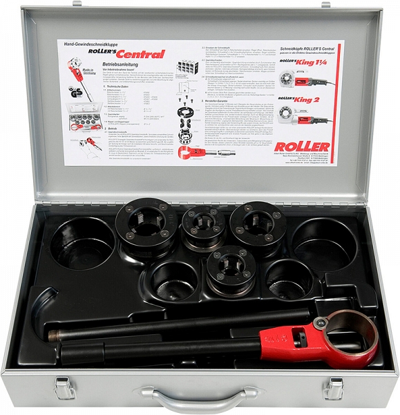 Ручной резьбонарезной трубный клупп Roller Central Set M 20-25-32-40 (×1,5) (Роллер Централ Сет М 20-25-32-40 (×1,5)) предназначен для нарезки правой метрической трубной резьбы M, согласно EN 60423, с шагом 1,5 мм на электроизоляционных трубах Ø 20, 25, 32, 40 мм.