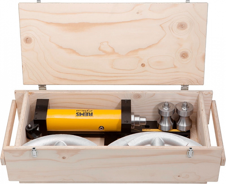 - REMS Питон Сет. Масляногидравлический трубогиб для точной гибки труб до 90°. Стальные трубы EN 10255 Ø 3/8" – 2", металлопластиковые трубы Ø 32 – 75 мм. Привод с опорами скользящих роликов, верхняя опора скользящих роликов со смещаемой в сторону опорной плитой скользящего ролика, 2 скользящих ролика, гибочные сегменты St и V. В прочном ящике для транспортировки.